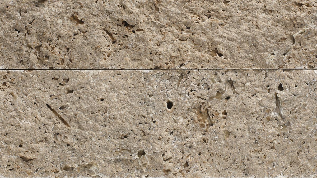 Il Travertino Noce si presenta su una superficie predominante color noce, come dice il nome. È un materiale che mixa diverse tinte di marrone e grigio, che vanno a formare una texture compatta e omogenea.