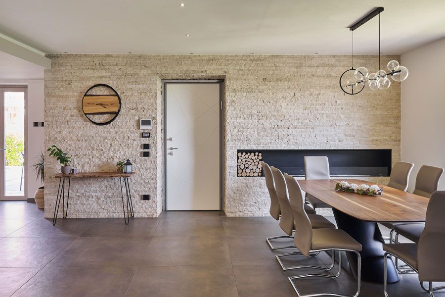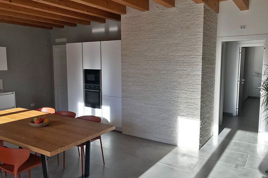 Lo spaccatello, all’ingresso interno dell’abitazione, valorizza a prima vista l’abitazione e i suoi spazi, trasmette un senso di calore e di accoglienza; inoltre, racconta il rispetto per l’ambiente, dà importanza alla pietra naturale e crea una sensazione di quiete e pace interiore.