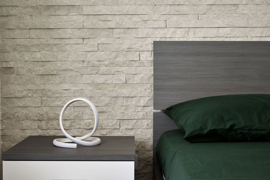 La regolarità della forma del listello a spacco consente di creare rivestimenti geometrici, progettati perfettamente per accogliere la spalliera del letto, la libreria, i comodini o qualsiasi altro mobile d’arredo. La finezza della fettuccia in marmo crea ambienti leggeri e rilassanti, ambient ideale per la camera da letto.